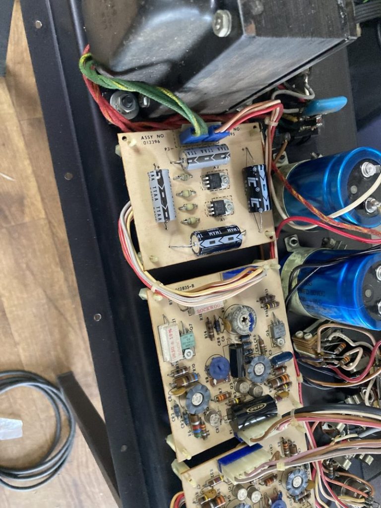 ちなみにプリアンプも当社在庫品の物を使ってみましたが、こちらのプリアンプも状態が良く無く、少々ノイズが乗ります。中々大変な修理になりそうです。先ずは、今回の不具合の原因の可能性のある所から、パーツ交換を行って行きます。
