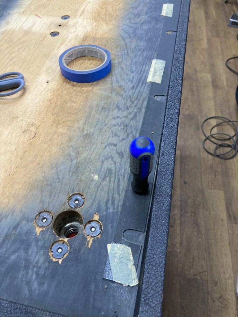 2025.12.15本日より、本格的な作業を開始いたしました。先ずは、プリアンプパネルの台木のビスが欠損してプリアンプパネルがちゃんと固定されていなかったので、10㎜長のパンヘッドビスで取り付けしました。台木がやや反っていたので、左右の拍子木に取り付ける為のビス穴に合う様に、台木を取り付けました。