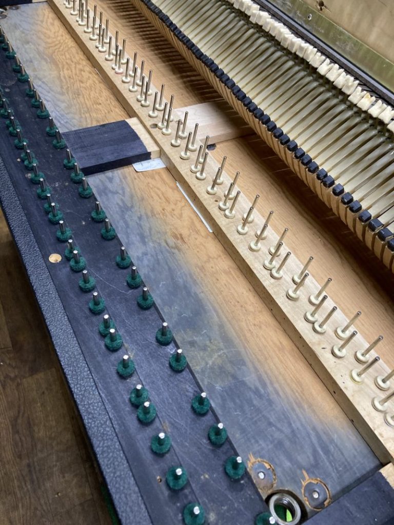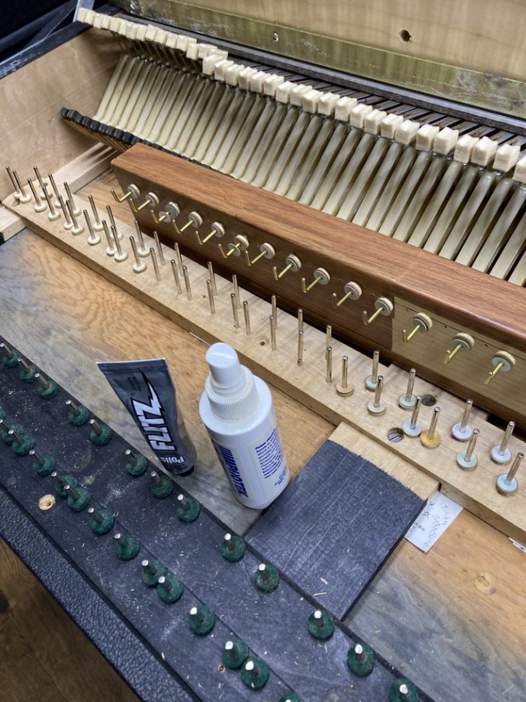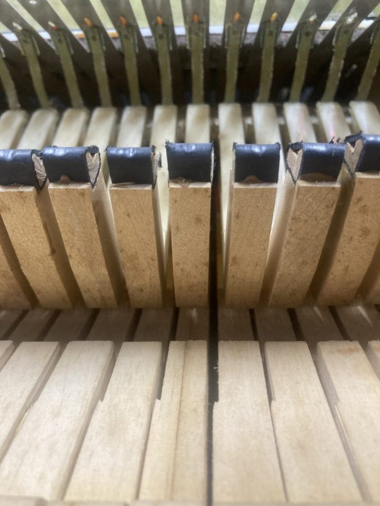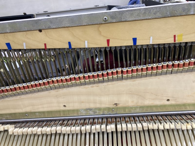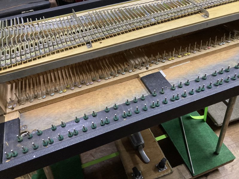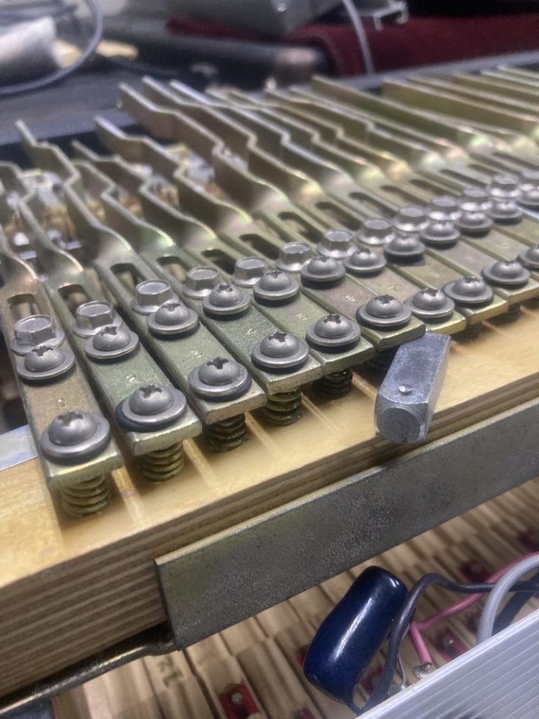 2025.12.21今日は日曜日ですが、修理が溜まってしまっていますので工房で作業を行いました。先ずはハープ調整を行いました。こちらの個体はかなりハープがいじられていて、ハープの位置が全く揃っていませんでした。その為、全てのトーンジェネレーターの高さ合わせから始めました。