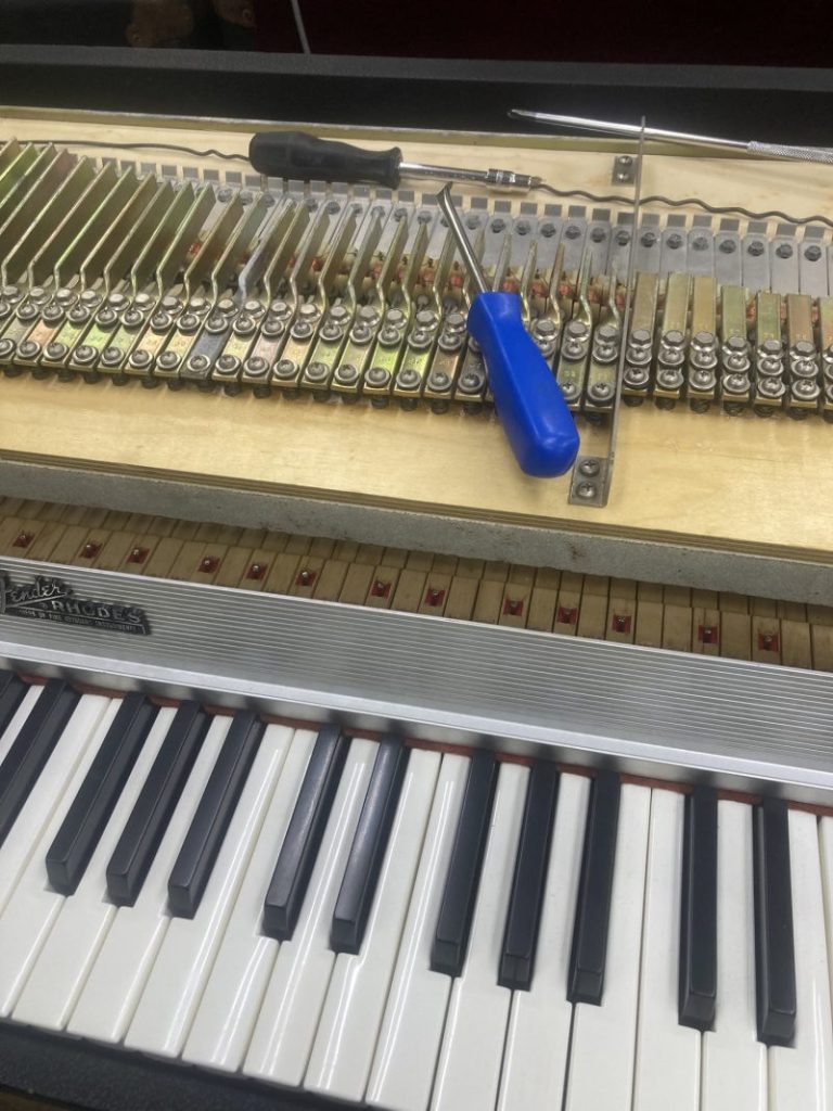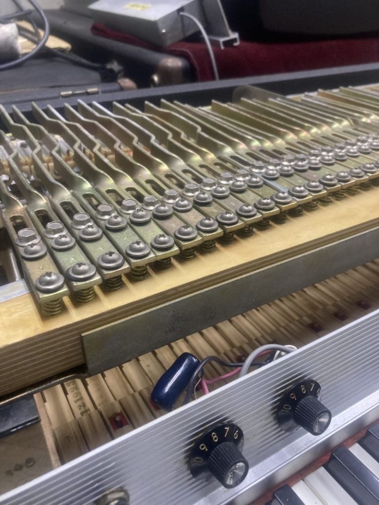 2025.11.26都内にお住まいのお客様がFender Rhodes Stage Modelをお持ち込み下さいました。当初の症状はハンマーチップが一つ無くなっているので、取り付けて欲しいとのご依頼でした。