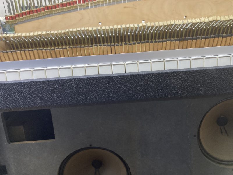 黒鍵も同様にならし整調を行いました。これまでメンテナンスを行ったRhodes Pianoで鍵盤整調されていたものは殆ど有りませんでした。アコースティックピアノの場合は割と行われる鍵盤整調ですが、エレピの場合は殆ど行われる事は有りません。エレピの場合、アコースティックピアノ程タッチを気にしないからなのかも知れません。
