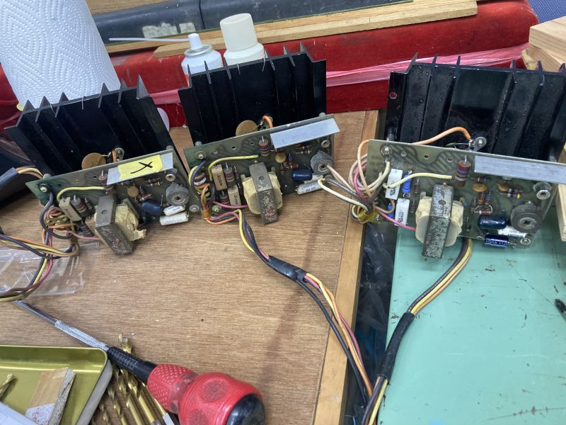 2024.08.07コネクター、ケーブル関係を交換、制作して音出しをしてみましたが、ハムノイズの為、音が出ていません。これはなかなか厄介な事になりました。コネクター交換時の配線番号のミスなのか、プリアンプの部品の故障なのか、目星を幾つか絞ってチェックをして行きます。