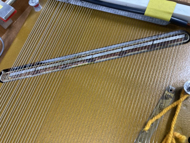 それならばとフェルトを弦の間に編み込んでみましたが、今度はミュートがかかった状態で全く音になりません。
