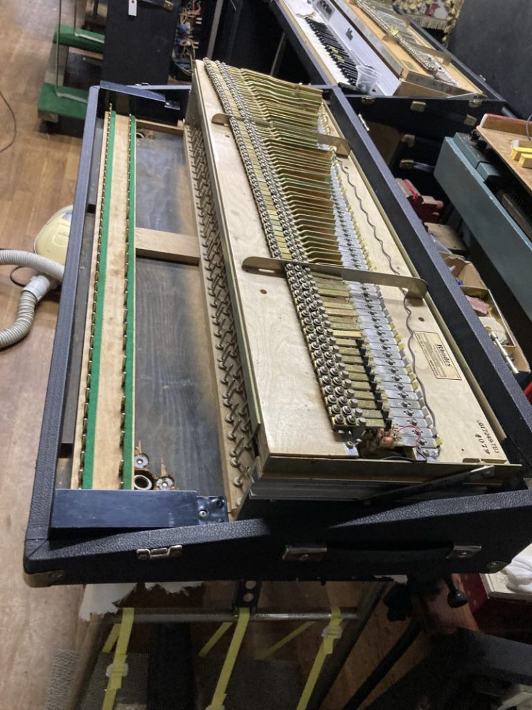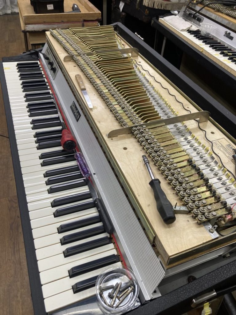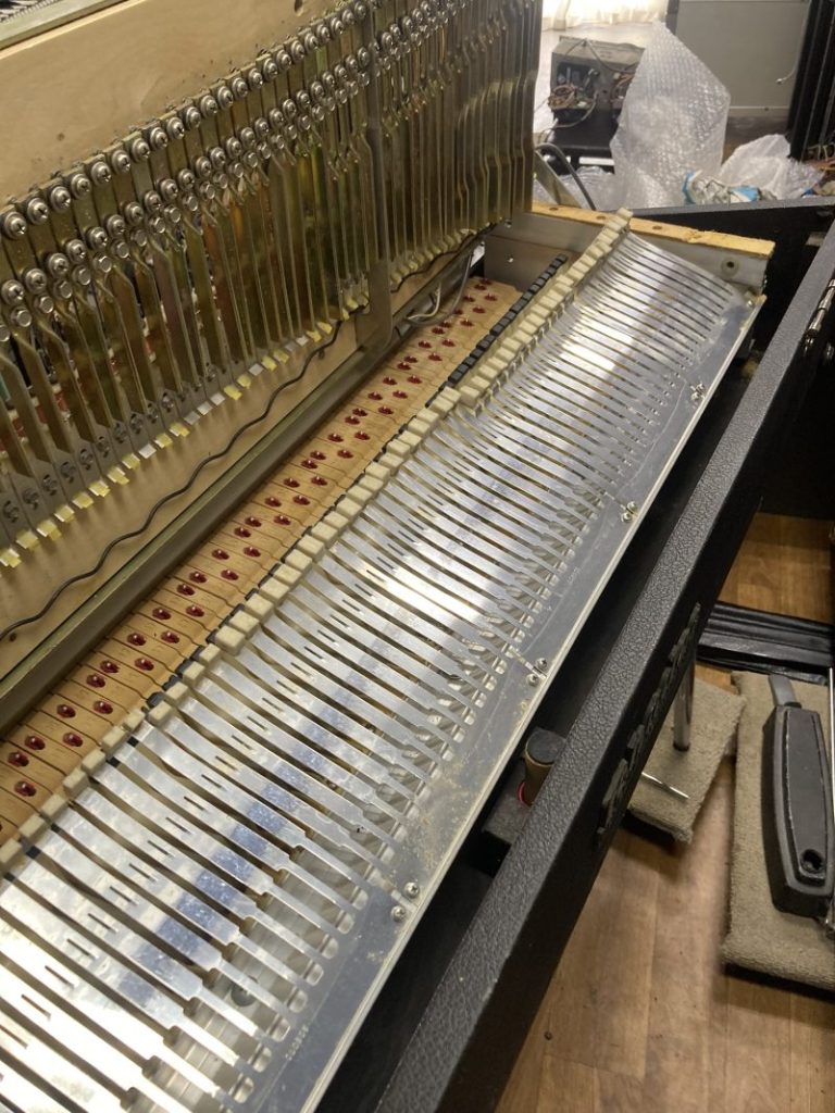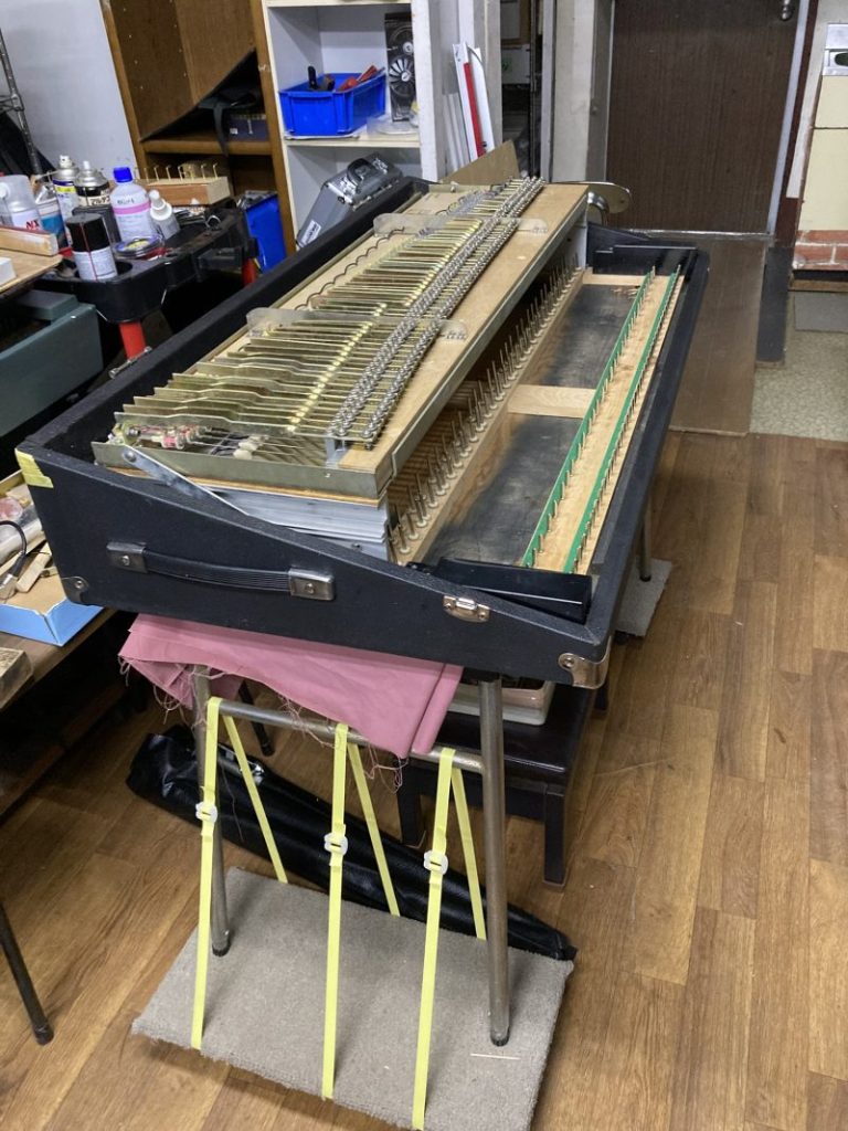 2025.09.22当社在庫品の棚卸も兼ねて、倉庫に眠っているRhodes Pianoの在庫をチェックしました。するとMark1のステージモデルが1台出て来ました。後は全てMarkⅡでしたので、これが現在残っているMark1Stage Modelとなります。